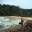 Céu azul e sol a pino, vencemos o segundo costão de pedra, este um pouco mais íngreme, porém mais curto e chegamos à Praia da Ribeira. Esta possui vários barzinhos à beira da praia, todos cheios, caminhamos até o final da praia procurando a trilha para a Prainha e encontramos o nosso novo amigo, Vagner. Ele nos deu a dica da trilha, que fica no início da praia, seguindo o rio que sai do fundo do terreno.