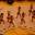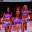 Nos intervalos do jogo, o show das cheerleaders no ginásio em Los Angeles, na Califórnia, nos Estados Unidos