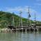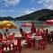 Muitas canoas e barcos na enseada de Gancho de Fora, em Governador Celso Ramos, litoral de Santa Catarina